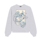 - Blue/Heather Grey, Pink/Bone, Red/Bone pullover crewneck with multi-color ink print