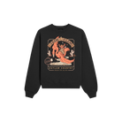 - Black pullover crewneck with multi-color ink print
